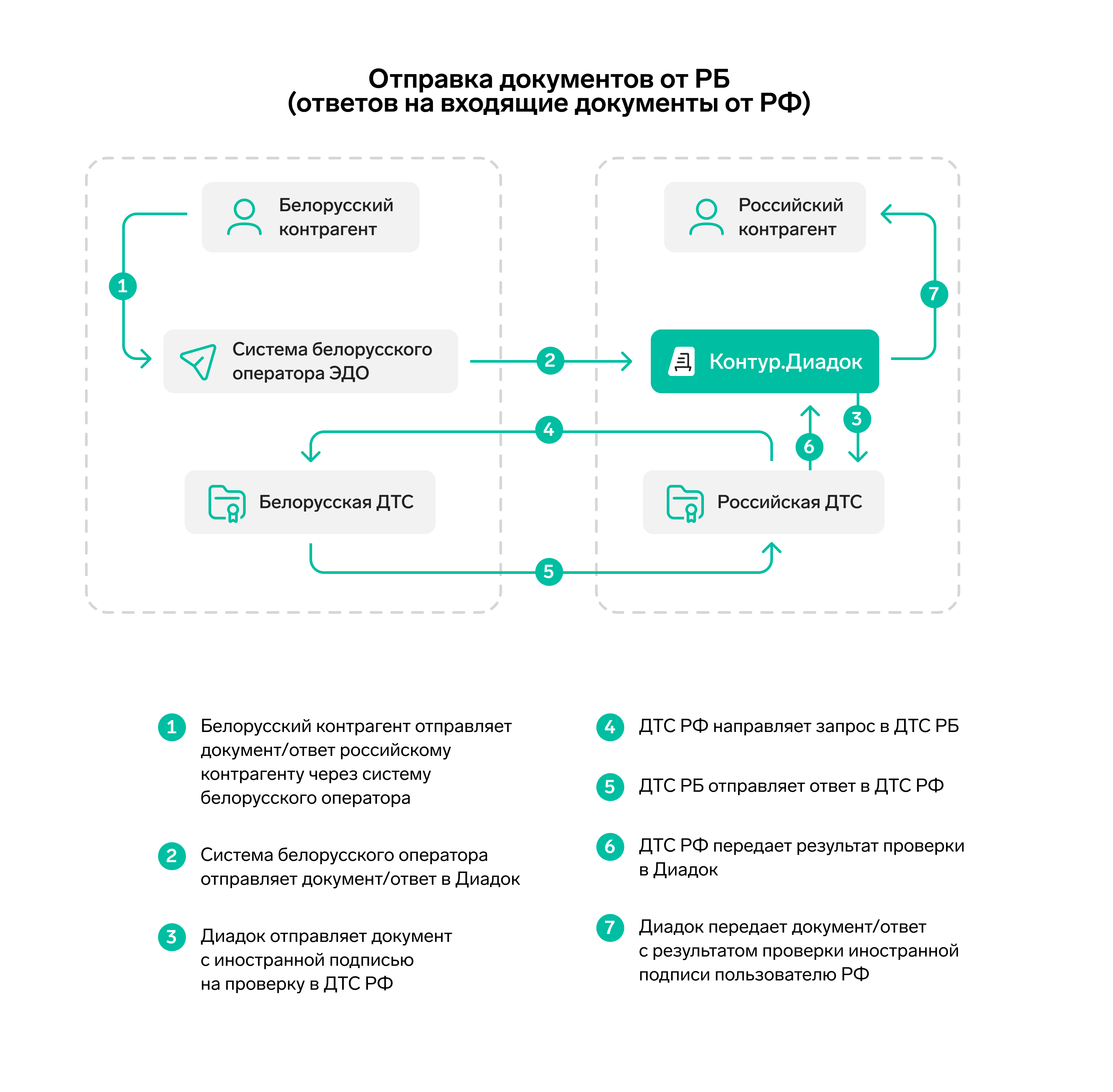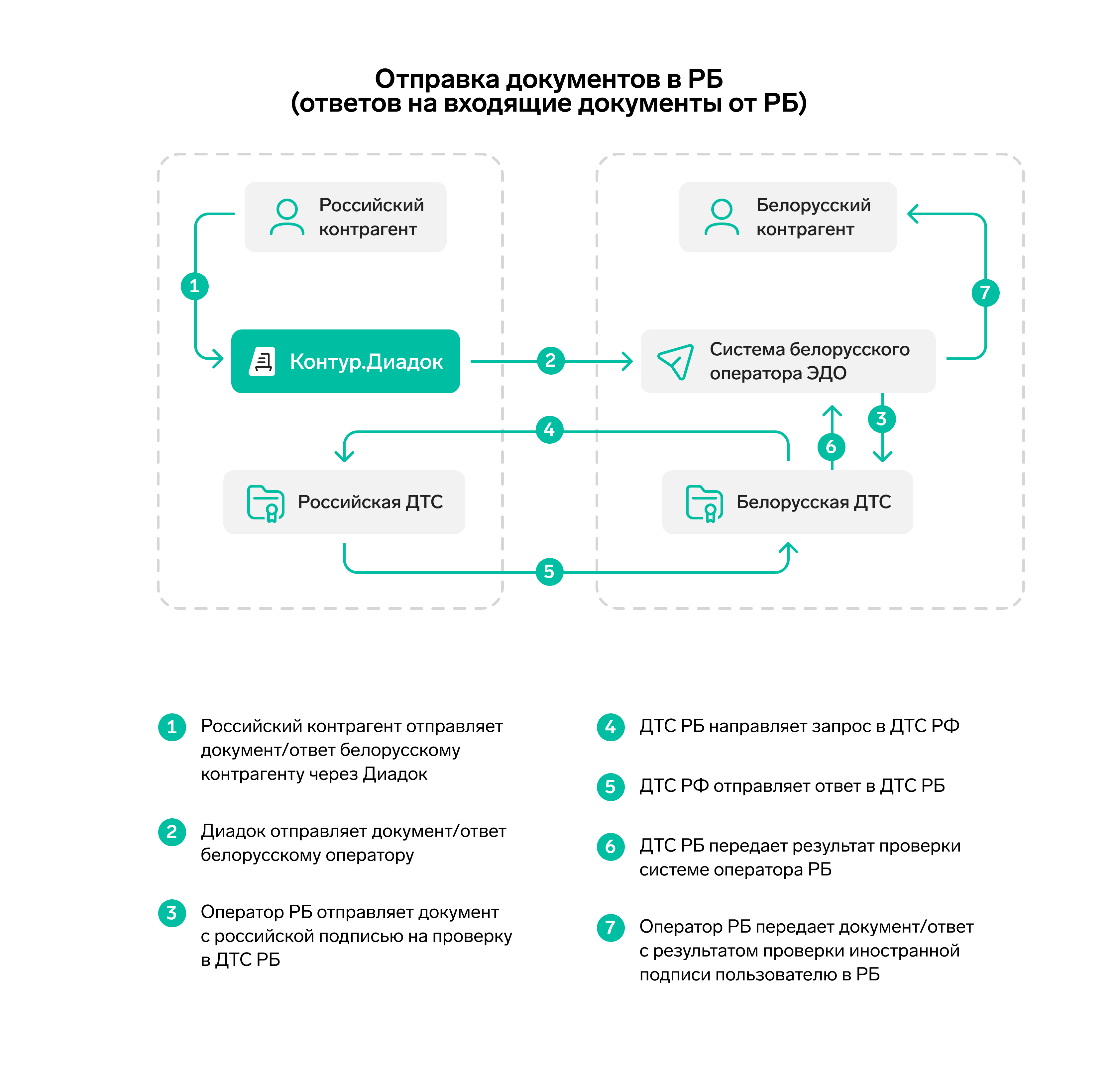 Контрагент в РФ отправляет документ через API Диадока контрагенту в РБ.