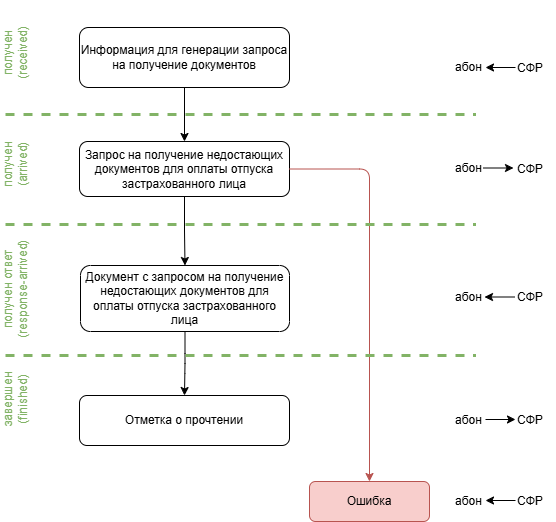 Отправлен запрос на получение недостающих документов для оплаты отпуска застрахованного лица |